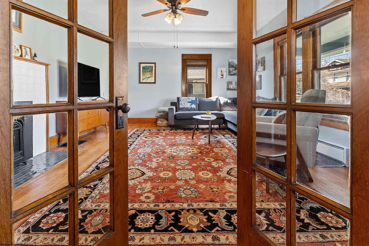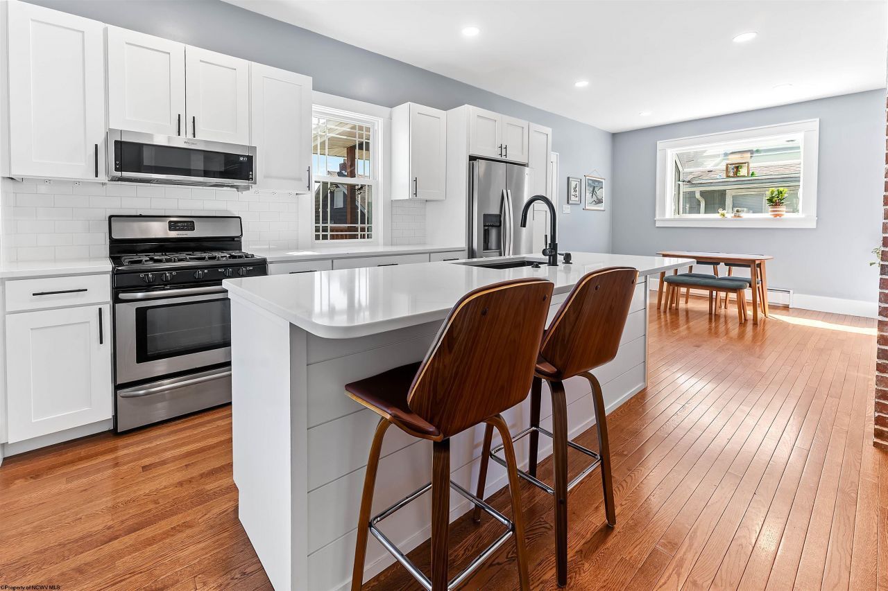 The open, sunny kitchen and dining area set the tone for this beautifully updated home, designed with both style and function in mind. White maple cabinetry, quartz countertops, and a large island with shiplap detailing create a clean, elevated space. Exposed brick adds warmth and character, while the dining area features custom cabinetry topped with a striking black walnut surface-ideal for everyday living and entertaining. Step directly out to the back deck overlooking the fenced yard for easy indoor-outdoor living. Original character and thoughtful modern updates come together throughout this 3-bedroom, 2-bath home. Built-ins add charm and function, while a welcoming covered front porch leads into a striking foyer with custom millwork. The cozy living room features additional built-ins and a gas fireplace, creating a comfortable, inviting gathering space. Upstairs, you'll find three well-sized bedrooms and two full baths, laid out for practical, everyday living. Outside, the fenced backyard offers space to relax or entertain, complemented by a detached garage that is being used as a hangout space with a rock climbing wall, plus ample off-street parking. Located just minutes from downtown Morgantown, WVU, and local amenities, this home delivers a strong blend of character, updates, and convenience. Schedule your tour today.